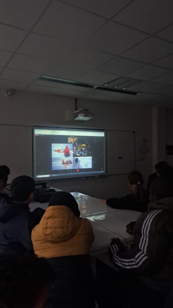 Ce mardi à 15h, les élèves de 6B et les écodélégués du collège ont participé à une visio conférence avec Daniel Cron, 2nd capitaine du bateau Polar Station. Actuellement à Oulu en Finlande, les élèves ont visité le bateau et découvert les différentes zones de vie et de travail.