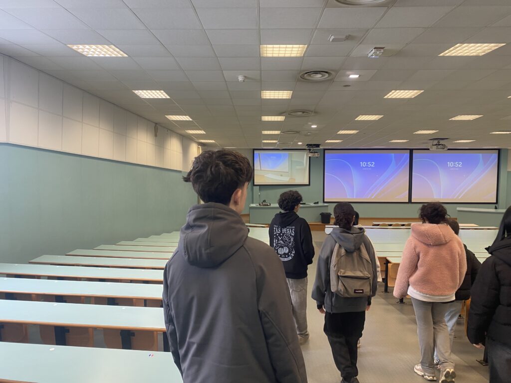 La visite s’est achevée par une visite du campus où les élèves ont pu entrer dans un amphithéâtre.