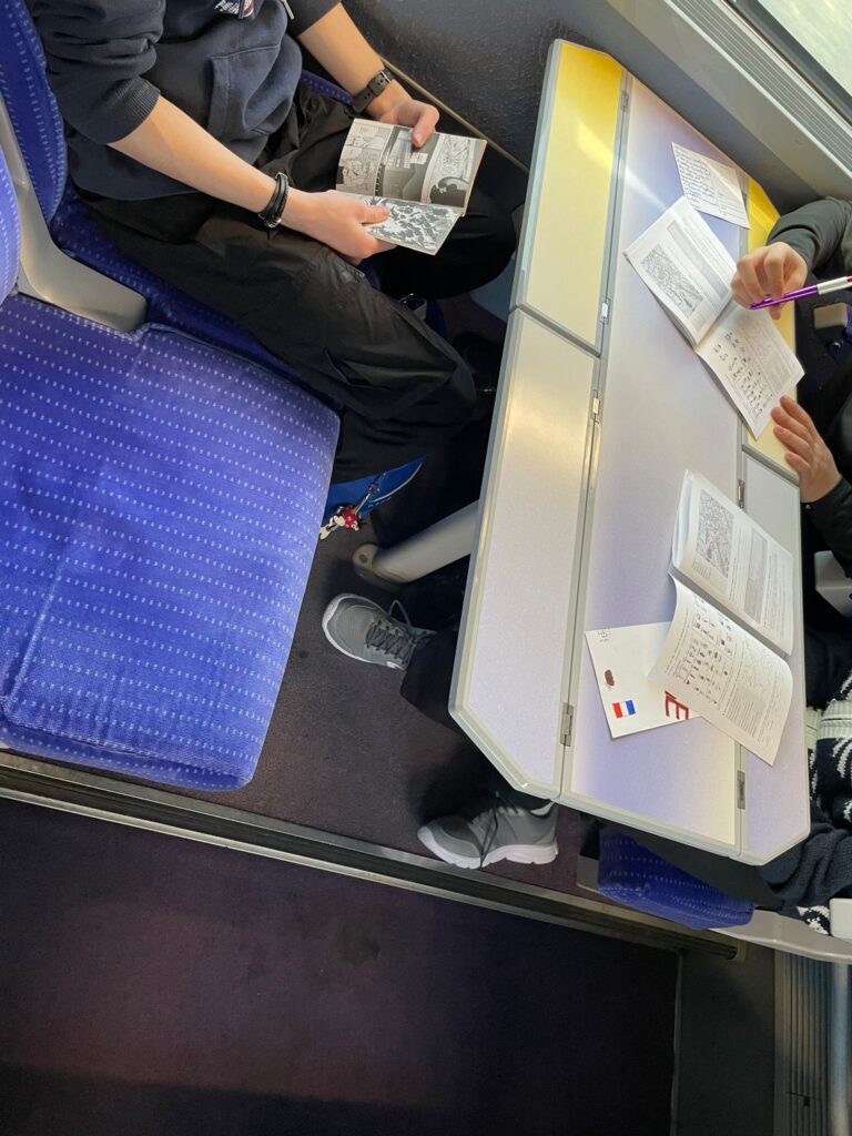 Ce matin, une partie des 4èmes et 3èmes germanistes sont partis à Francfort-sur-le-Main (Allemagne). Ils ont pris un premier train (Givors-Lyon) puis le TGV (Lyon-Francfort).