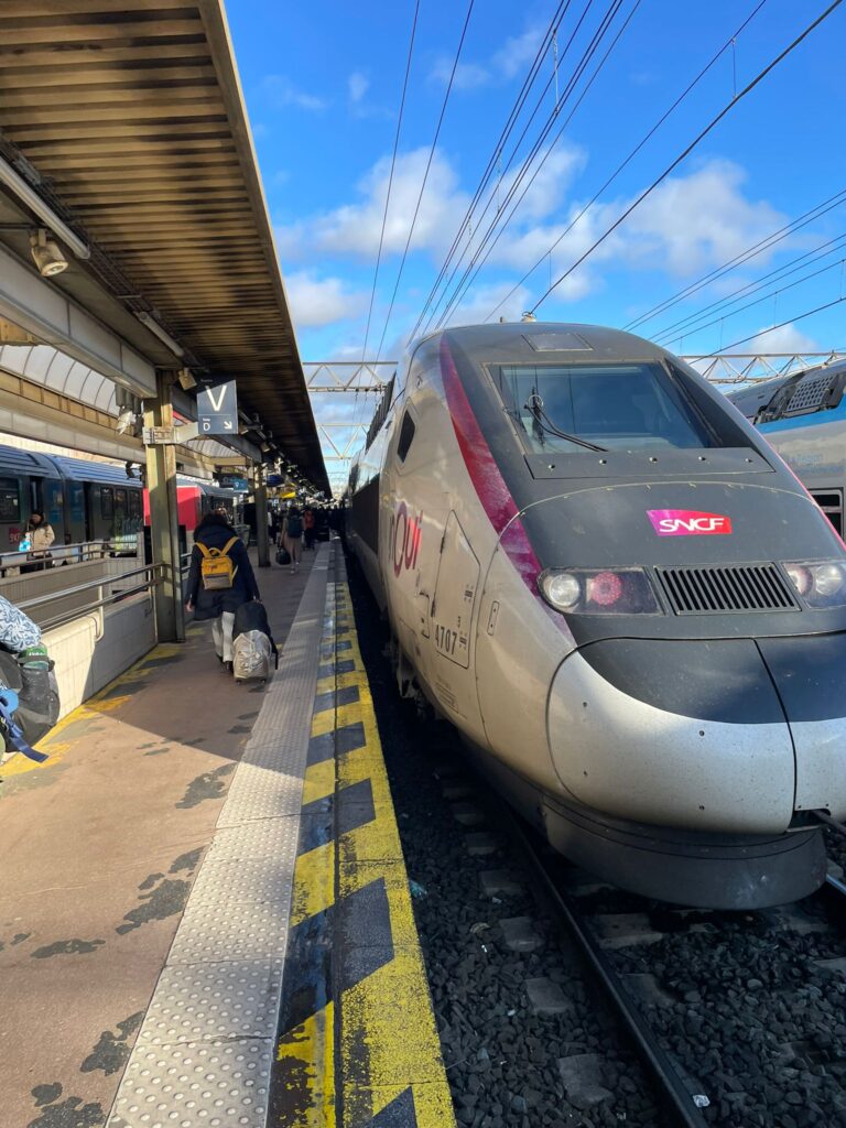 Ce matin, une partie des 4èmes et 3èmes germanistes sont partis à Francfort-sur-le-Main (Allemagne). Ils ont pris un premier train (Givors-Lyon) puis le TGV (Lyon-Francfort).