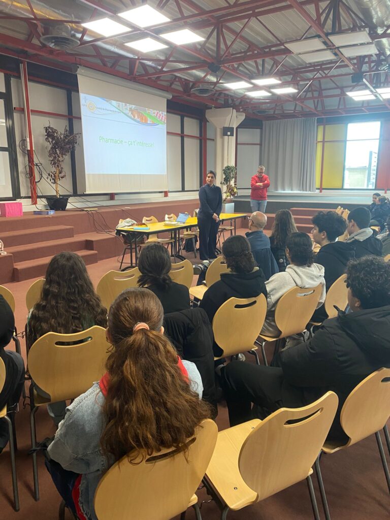Ce mercredi 10 décembre, les élèves du collège Paul Vallon faisant de la cordée santé, se sont rendus au lycée Aragon Picasso où deux pharmaciens chercheurs ont présenté les études et les métiers de la pharmacie.